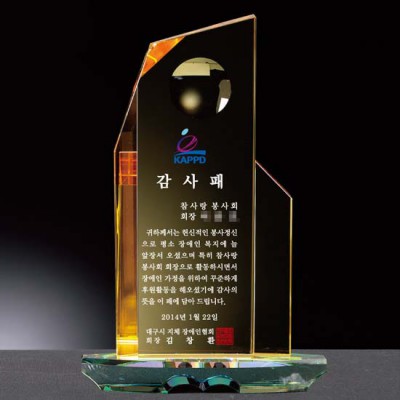 지체장애인협회 감사패 제작 옐로우 크리스탈패