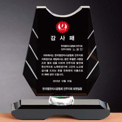 한국열관리시공협회 감사패 제작 블랙 크리스탈패