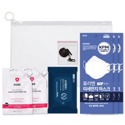 코로나 생활안심세트-VM506 손소독티슈 10매 1P + KF94마스크 3P + 손소독젤 30ml 2P + 마스크스트랩 1P