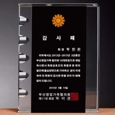 부산영업가족협의회 감사패 크리스탈공로패 퇴직기념패 상패제작