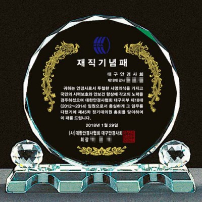 대한안경사협회 재직기념패 표창패 크리스탈감사패 공로패제작
