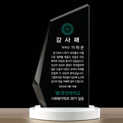 충청대학교 감사패 제작 블랙 크리스탈 금속다이패