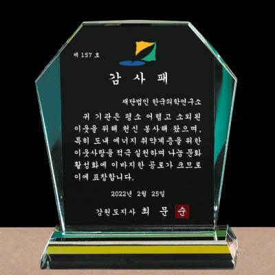 강원도지사 감사패 크리스탈공로패 재직기념패 퇴직선물 상패제작