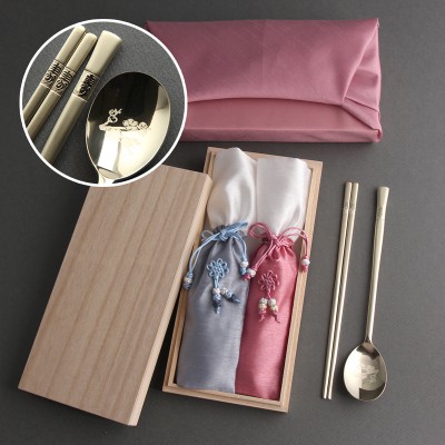 매화수 골드 수저2인용 보자기포장 포함 돌잔치 기념품 답례품 출산선물 아기생일 단체