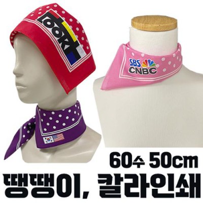 국산 면60수 땡땡이 스카프 손수건 부분 칼라인쇄 50cm