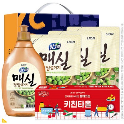 친환경 참그린매실500용기 매실300리필3P 빨아쓰는키친타올 5종