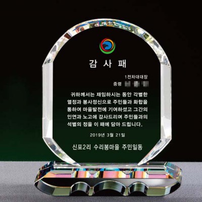 수리봉마을 주민회 감사패 상패제작 크리스탈공로패 재직기념패 크리스탈패