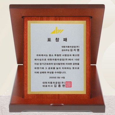 대원자동차공업 표창패 재직기념패 퇴직 제작 기념패