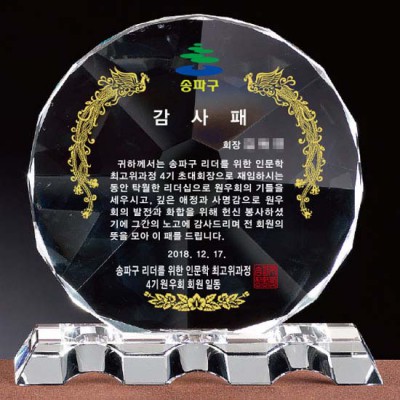 송파구 원우회 감사패 졸업상패 감사공로패 크리스탈패 장기근속페