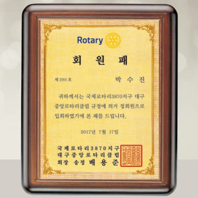 중앙로타리클럽 회원패 위촉패 공로패 제작 감사패