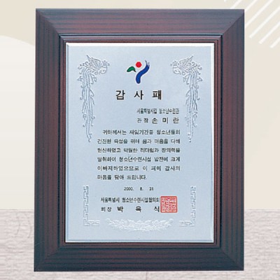 청소년수련시설협의회 감사패 퇴직 제작 재직기념패 기념패