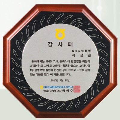 NH농협생명 감사패 기념패 제작 퇴직 재직기념패