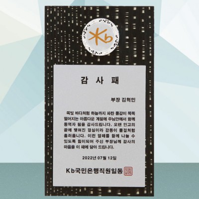 • KB국민은행 감사패 재직기념패 기념패 제작 퇴직