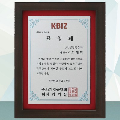 • 중소기업중앙회 표창패 퇴직 기념패 제작 재직기념패