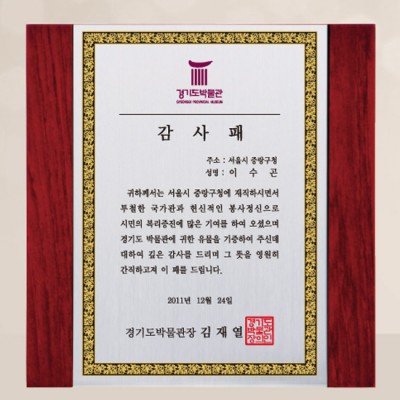 경기도박물관 감사패 상패 공로패 제작