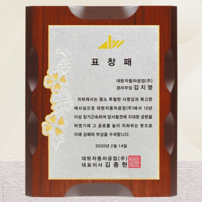 자동차공업 표창패 제작 상패 감사패 공로패