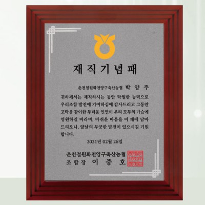 춘천철원화천양구축산농협 재직기념패 퇴직 기념패 제작