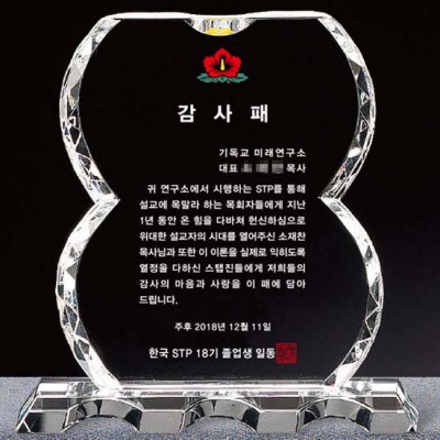 미래연구소 감사패 퇴직선물 크리스탈상패 표창패