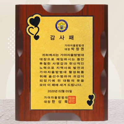 자율방범대 감사패 재직기념패 기념패 제작 퇴직