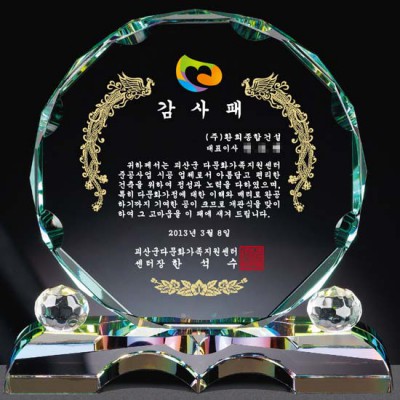 다문화가족지원센터 감사패 크리스탈공로패 퇴직선물 근속기념패