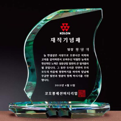 코오롱패션머티리얼 재직기념패 크리스탈상패 부모님감사패