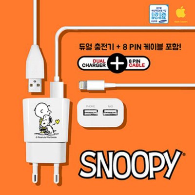 스누피 2.1A 듀얼 8핀 충전기