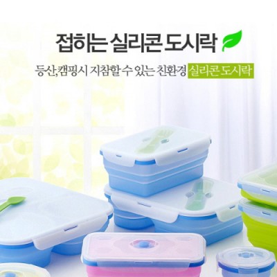 무독성 실리콘 접이식 도시락2구2단