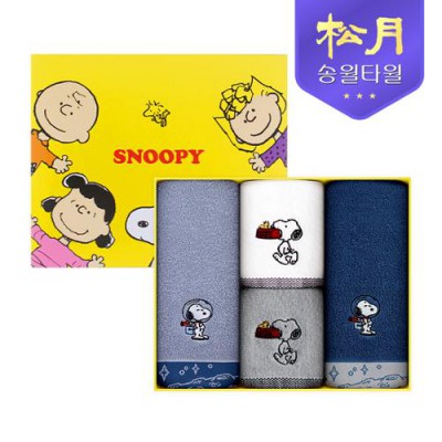 송월타올 스누피 스페이스40 스누피 블럭블랙34 4P세트 세면2 핸드2