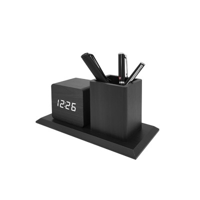 LED블랙우드펜꽂이시계D1020