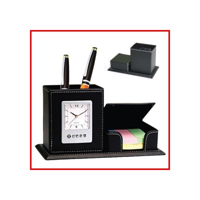 (가죽받침)아나로그시계 접착 메모지/탁상시계/펜꽃이시계