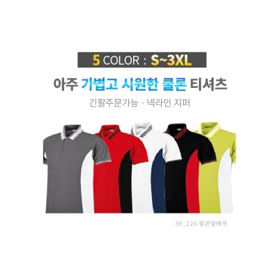 쿨론 옆 배색 단추 카라 티셔츠