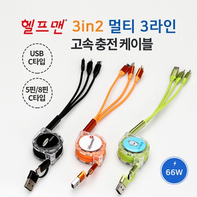 헬프맨 멀티 3라인 3in2 고속충전케이블 66W