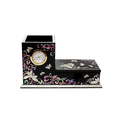 나빌레라 자개 꽃나비 시계 명함함&펜꽂이 세트