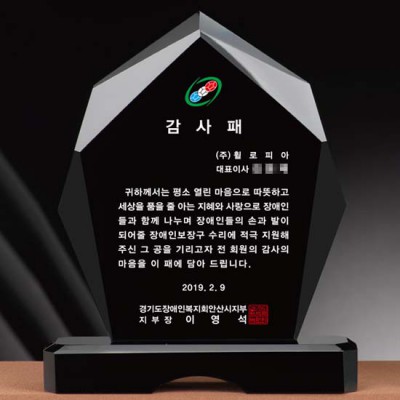 장애인복지회 감사패 제작 상패 블랙 크리스탈상패