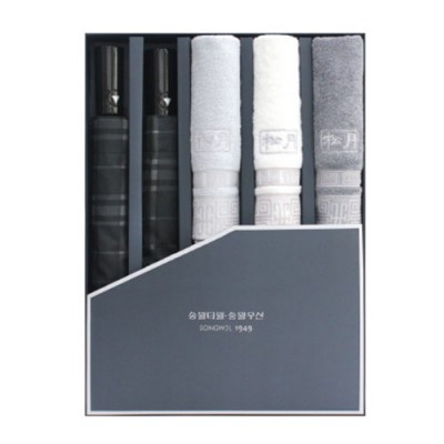 송월 우산 수건 콤보세트 SWU 2단 모던체크 2개 송월 격자40 3장 5매입 세트