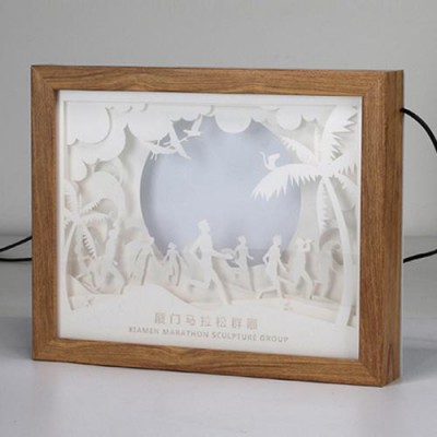 모던오피스 우드프레임 종이조각 LED 액자CA162