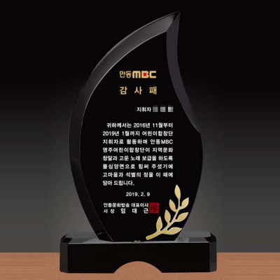 안동문화방송 감사패 기념패 제작 블랙 크리스탈패