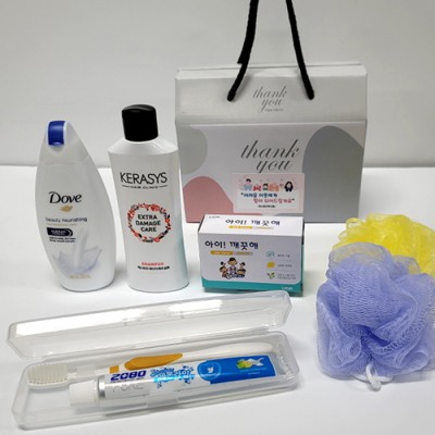 선물세트 8종-바디워시 샴푸 비누 치약 칫솔 샤워볼