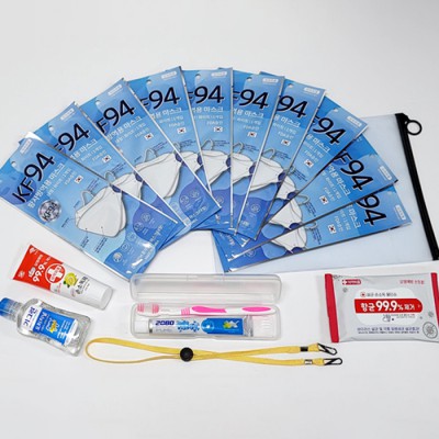 18종 키트 - KF94 마스크 손소독제 손소독티슈 가그린 치약칫솔세트 마스크목걸이 지퍼케이스