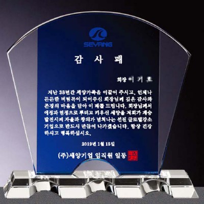 세양기업 감사패 상패 제작 투톤 크리스탈패