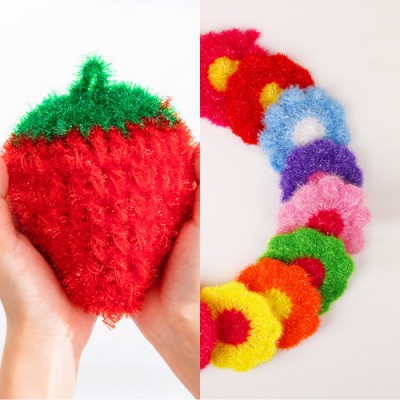 핸드메이드 딸기 & 플라워 수세미 2종 세트