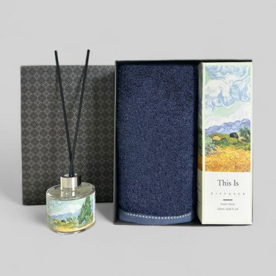 프리미엄 디퓨져 수건 답례품 명화B(디퓨져 120ml1+솔리드뱀부무지1) 선물세트 단체선물 기념선물