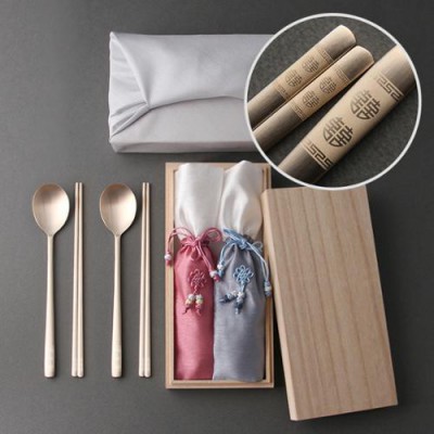 무병다복 희 방짜유기 수저 2인용 오동나무함,비단보자기 포장