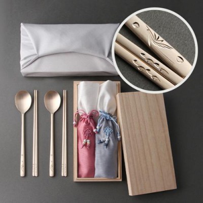 장수학 손조각 방짜유기 2인용 수저세트 오동나무함, 보자기 포장