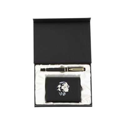 워터펜블랙수성+매화나전한지가죽명함지갑