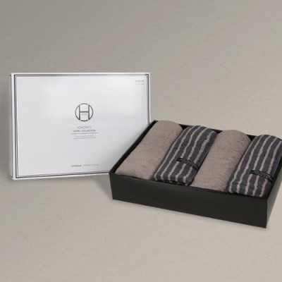 송월타올 호텔컬렉션 스트라이프 솔리드44 4매 선물세트(쇼핑백) 기념수건 답례품