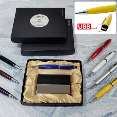 선물세트2종 고급 메탈 명함케이스+칼라볼펜 USB메모리(8G)
