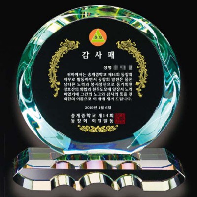 중학교 동창회 재직 위촉패 감사패 공로패 퇴직제작 상패 기념패 그린 크리스탈 인쇄