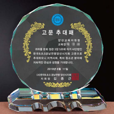 B.B.S경남연맹 양산지시회 재직 위촉패 공로패 퇴직 감사패제작 상패 크리스탈 인쇄 기념패