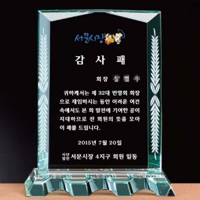 번영회 회장 퇴직 감사패 위촉패 공로패 재직인쇄 기념패 상패 그린 크리스탈 제작